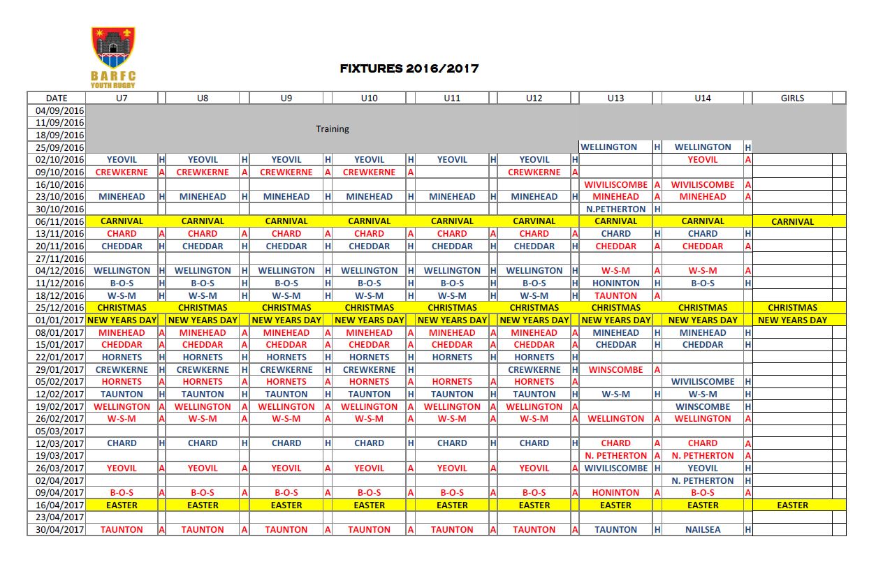 2016 – 2017 Fixtures