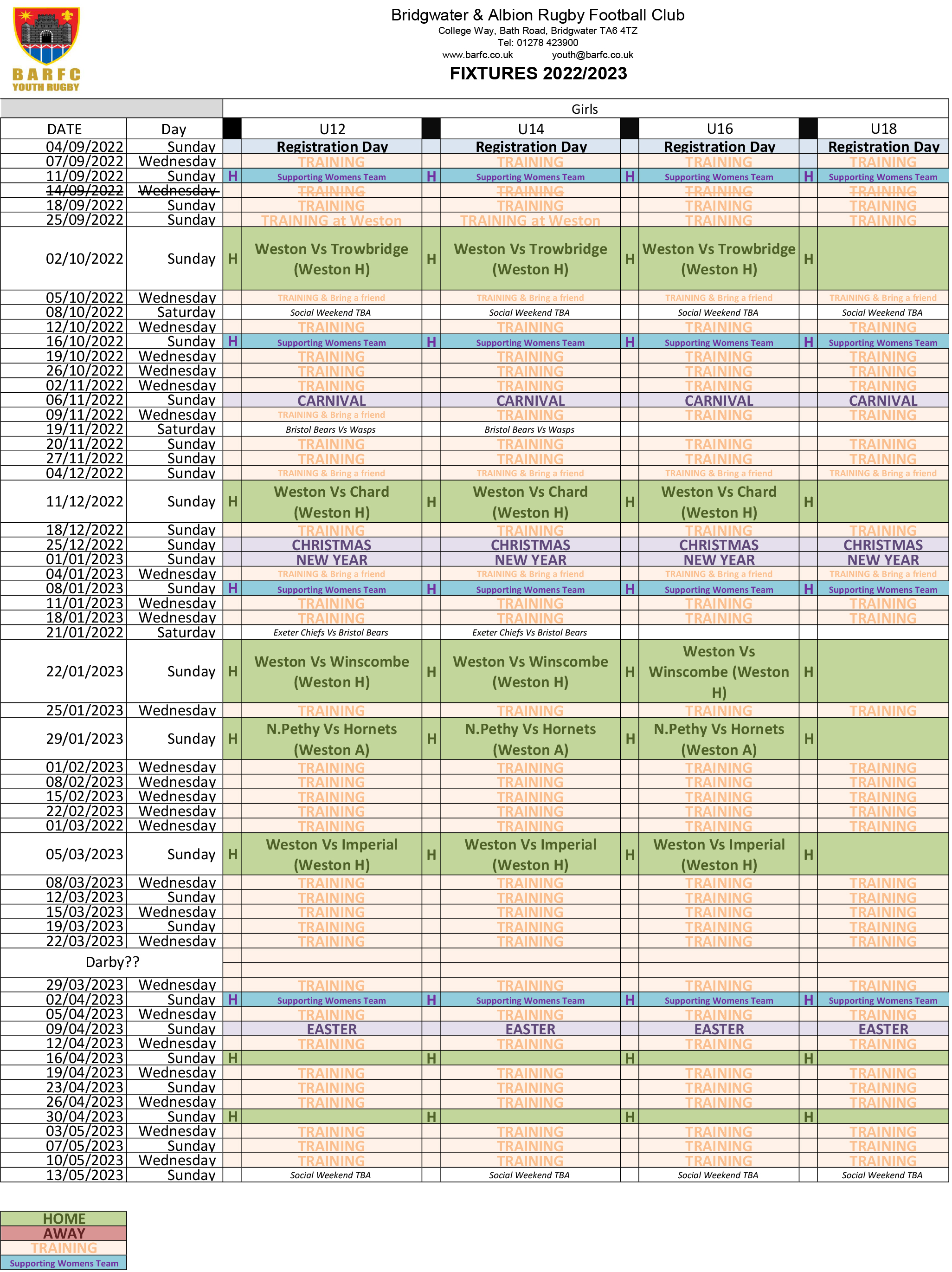 Youth Section Contacts (2022/23)