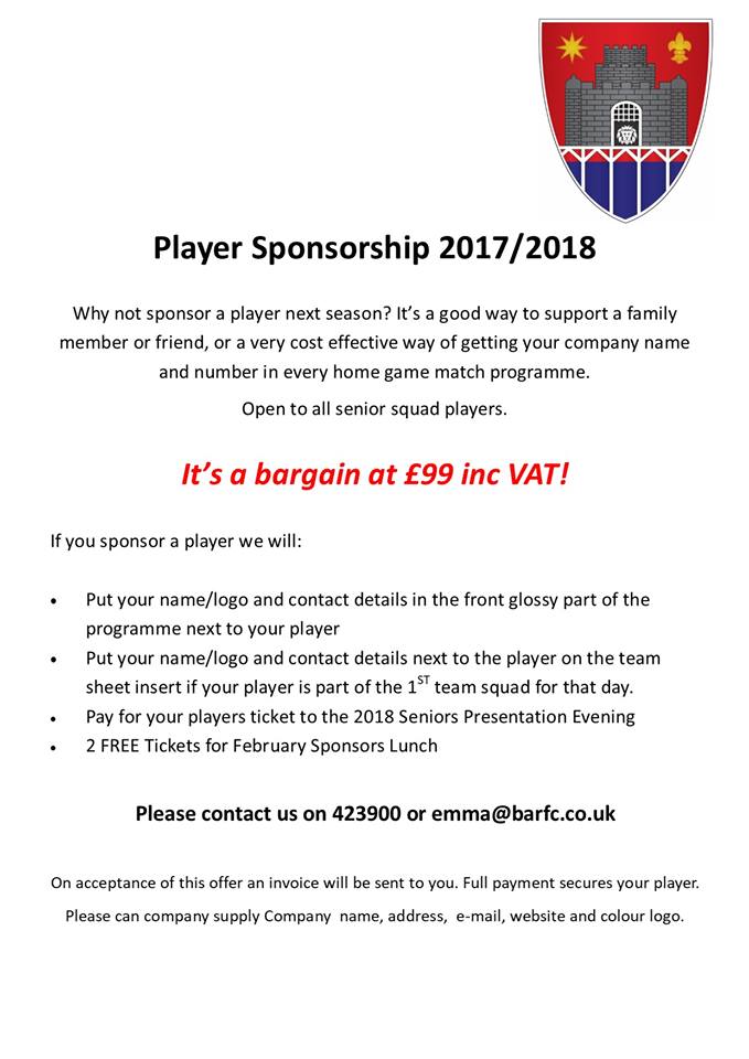 Player Sponsorships! Calling all players, please ask your friends, family and colleagues!